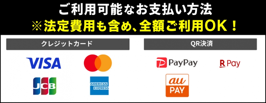※法定費用も含み全額クレジットカードでお支払い頂けます!